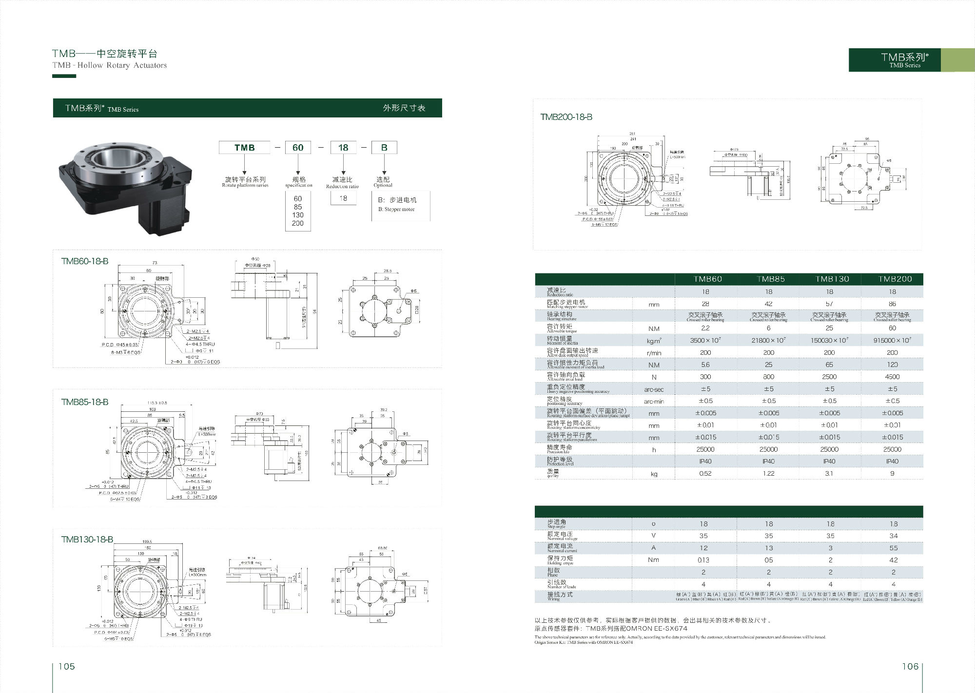 TMB中空旋轉平臺可采用不同廠家的伺服馬達驅動,精度高,運轉動作平穩,盤面運轉平穩,順暢且定位快速。