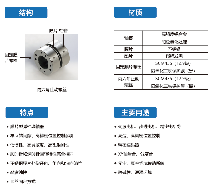 DFPA-G系列聯軸器采用高強度鋁合金材料,經過陽極氧化處理,廣泛用于伺服電機、步進電機、精密電機等。