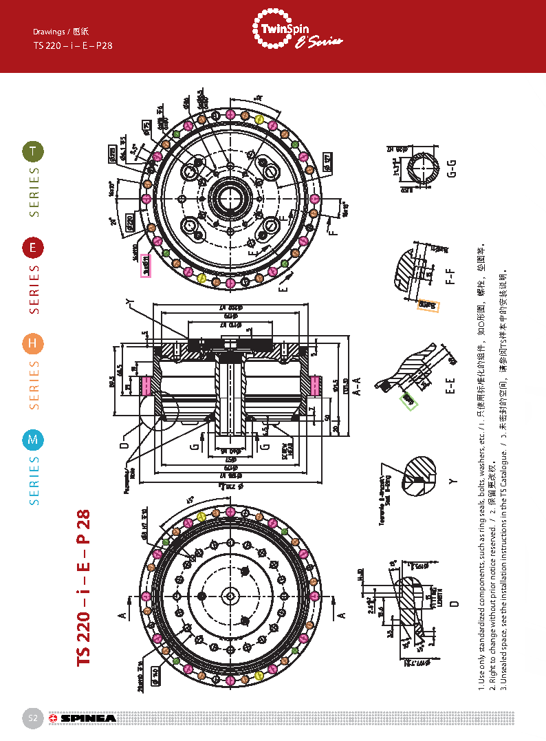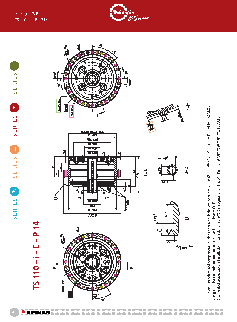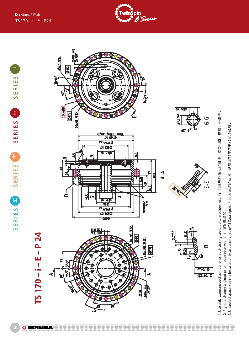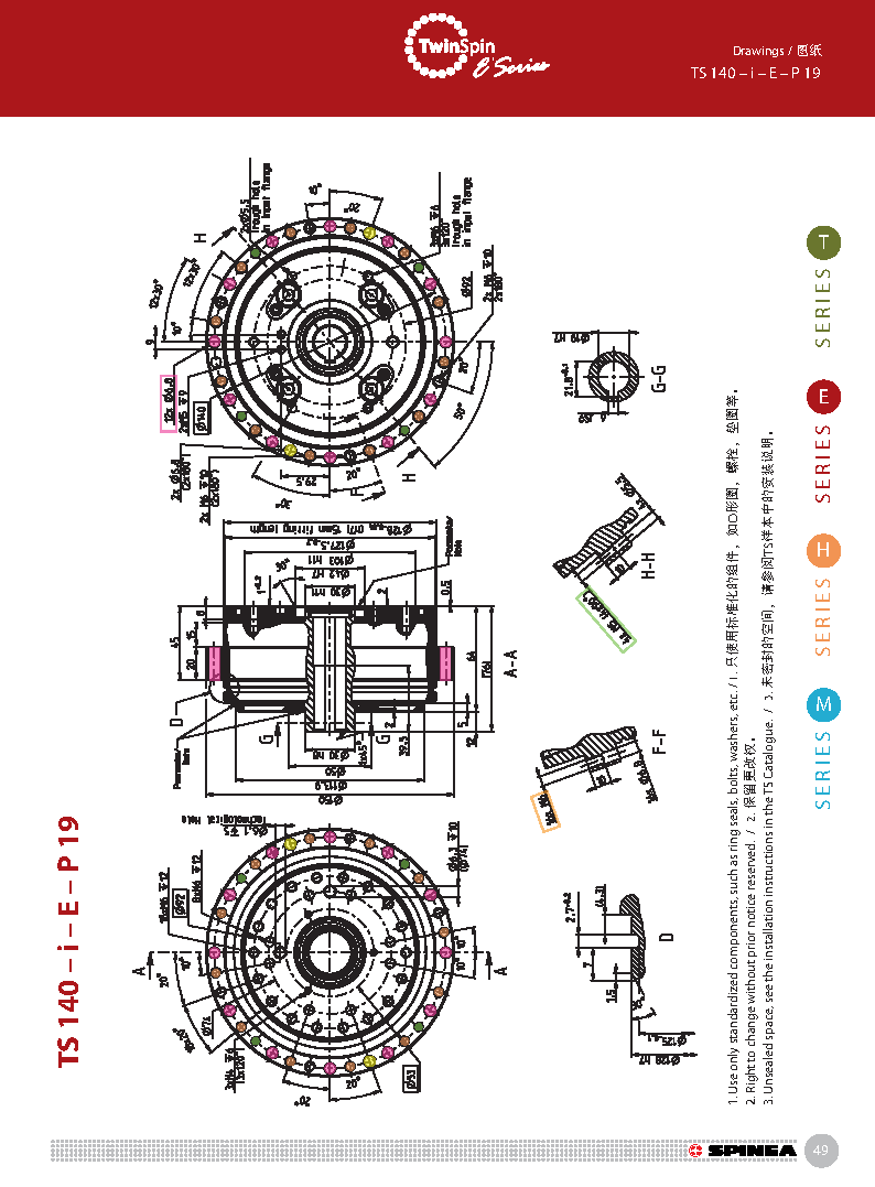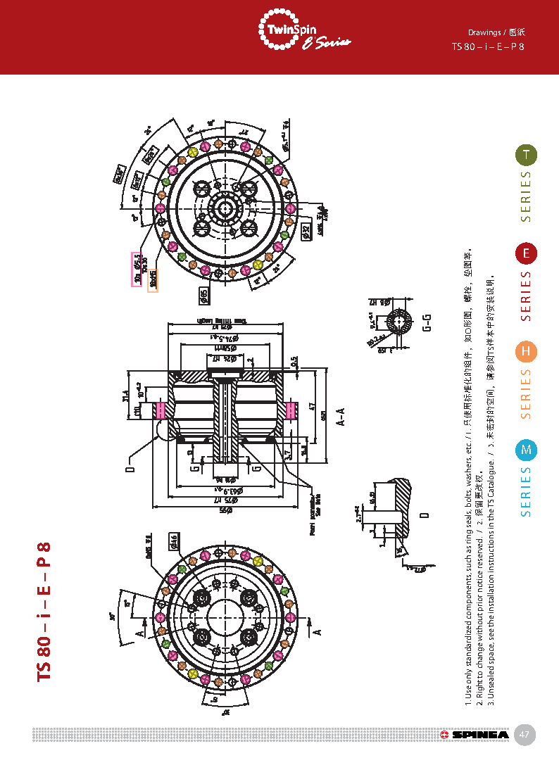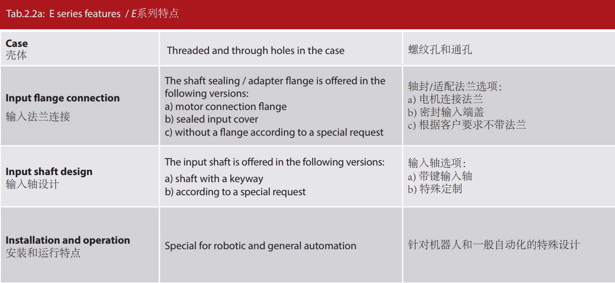 E 系列是帶有法蘭形殼體的Twinspin高精度減速機。 該系列內(nèi)部包含精密減速機構(gòu)和高強度交叉滾子軸承,又 名“軸承式減速機”。這種設(shè)計可以把負(fù)載直接安裝在減 速機輸出法蘭上,省去輸出端的額外軸承。 T系列采用模塊化設(shè)計,允許用戶通過電機法蘭的方式連 接各種電機。 標(biāo)準(zhǔn)的T系列減速機為半密封狀態(tài);需要用輸入法蘭和墊 圈密封。SPINEA可根據(jù)客戶電機結(jié)構(gòu)提供全密封帶輸入 法蘭的減速機。